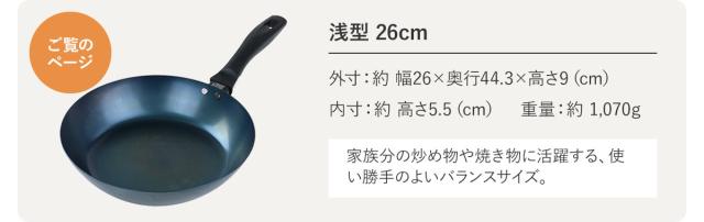 | 備考 | ※こちらの商品はあらかじめ職人の手によって独自の「ハードテンパー加工」が施されています。空焼き、油ならし不要で、お届け後すぐにお使い頂けます。 |