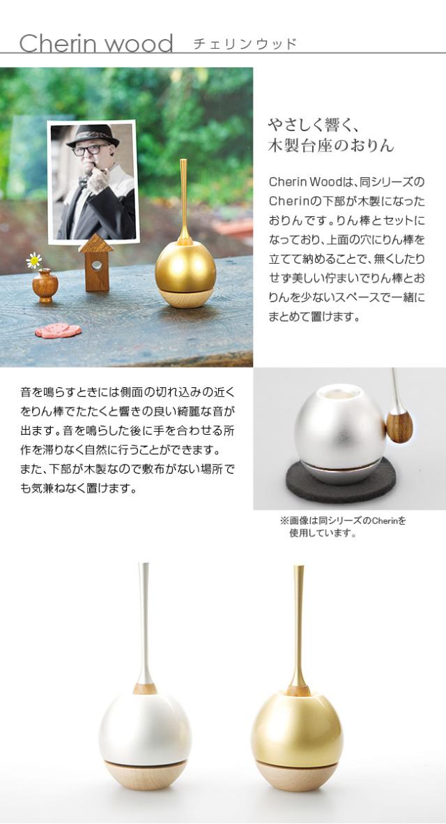 Sotto Cherin wood ソット チェリン ウッド(おりんとりん棒が一緒になったコンパクト(ミニ)な仏具セット リビングや洋室にも合うおしゃれな仏具のセット モダンな仏具のおりんセット) 1-2W