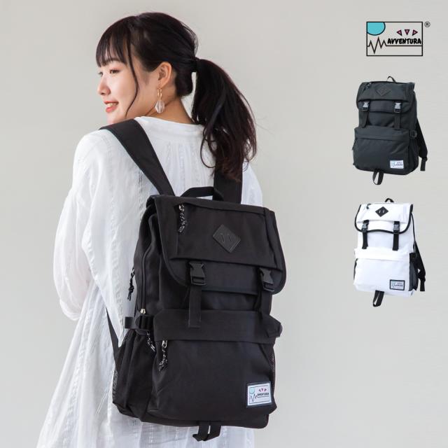 アヴェンチュラ リュック リュックサック フラップリュック 撥水 ナイロン 大容量 a4 メッシュポケット 背面 ファスナー ポケットたくさん 16L 黒 女子 男子 男女兼用 高校生 中学生 ユニセックス レディース 女性 メンズ 男性 大人 大学生 かわいいおしゃれ 人気 ブランド