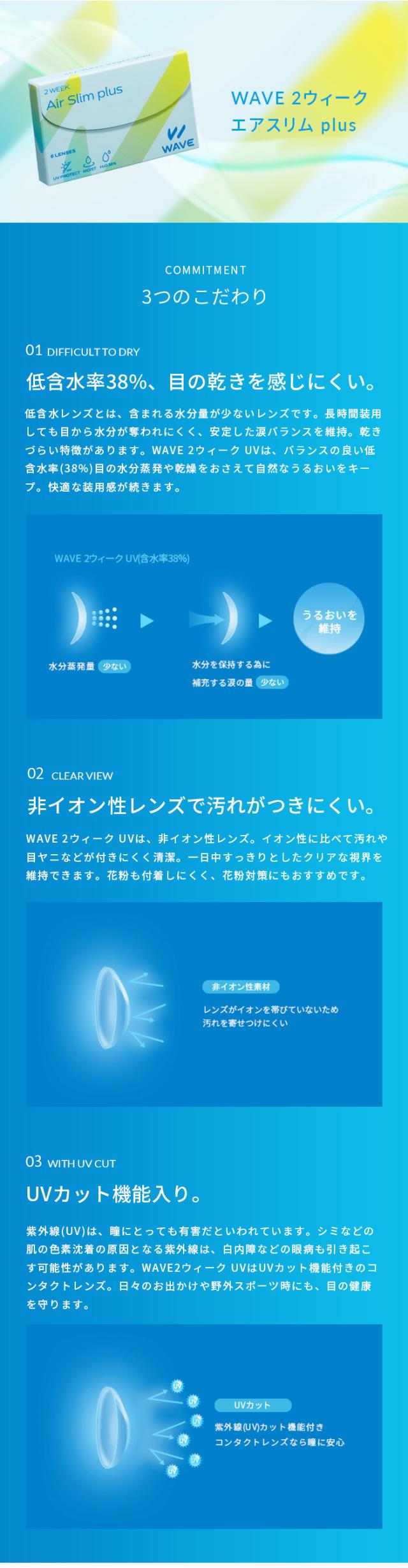 WAVE 2ウィーク エアスリム plus 6枚入り 2箱(+洗浄液 120ml×1本付き) WAVE ウェイブ コンタクト コンタクトレンズ 2week 2ウィーク UV プラス 使い捨て 送料無料