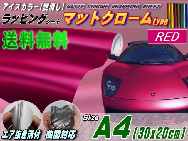 マットクローム (A4) 赤 【メール便 送料無料】 幅30cm×20cm A4サイズマゼンタレッド 艶消し アルマイトカラー メッキ調ラッピングフィルム 曲面対応 アイスカラー カッティング シート ステッカー デカール STiKA ステカsv-8 sv-12 sv-15 クラフトロボ シルエットカメオ対応