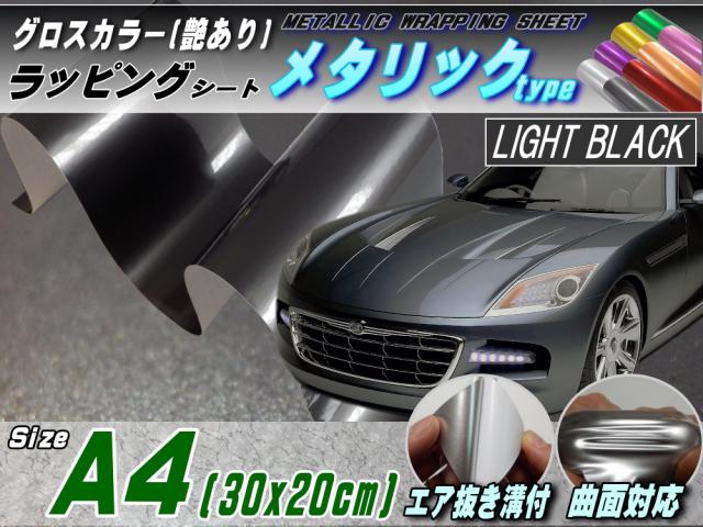メタリックシート (A4) 黒 幅30cm×20cm A4サイズ ライトブラック 艶あり ツヤ有り メタル調ラッピングフィルム シート ステッカー 3D曲面対応カスタム グロスカラー STiKA ステカsv-8 sv-12 sv-15クラフトロボ シルエットカメオ対応 カッティング 製作 内装 外装