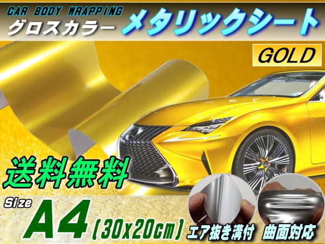 メタリックシート (A4) 金 【メール便 送料無料】 幅30cm×20cm A4サイズ ゴールド 艶あり ツヤ有り メタル調ラッピングフィルム シート ステッカー 3D曲面対応カスタム グロスカラー STiKA ステカsv-8 sv-12 sv-15クラフトロボ シルエットカメオ対応 製作 内装 外装