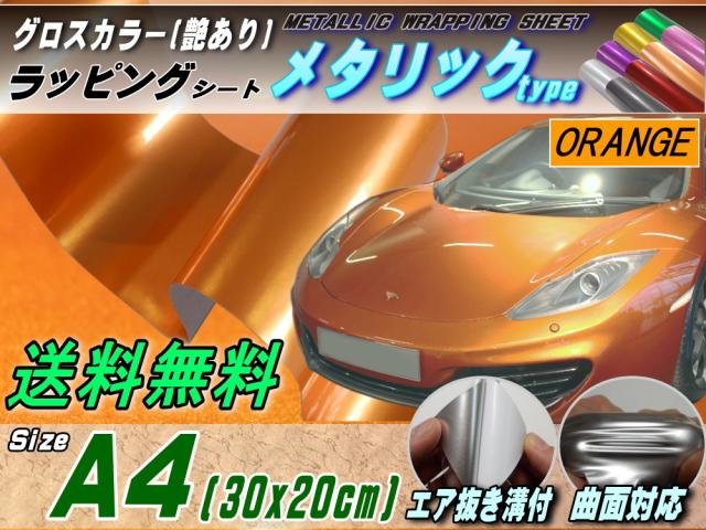 メタリックシート (A4) 柿 【メール便 送料無料】 幅30cm×20cm A4サイズ オレンジ 艶あり ツヤ有り メタル調ラッピングフィルム シート ステッカー 3D曲面対応カスタム グロスカラー STiKA ステカsv-8 sv-12 sv-15クラフトロボ シルエットカメオ対応 製作 内装 外装