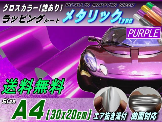 メタリックシート (A4) 紫 【メール便 送料無料】 幅30cm×20cm A4サイズ パープル 艶あり ツヤ有り メタル調ラッピングフィルム シート ステッカー 3D曲面対応カスタム グロスカラー STiKA ステカsv-8 sv-12 sv-15クラフトロボ シルエットカメオ対応 製作 内装 外装