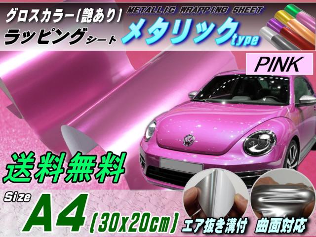 メタリックシート (A4) ピンク 【メール便 送料無料】 幅30cm×20cm A4サイズ 桃色 艶あり ツヤ有り メタル調ラッピングフィルム シート ステッカー 3D曲面対応カスタム グロスカラー STiKA ステカsv-8 sv-12 sv-15クラフトロボ シルエットカメオ対応 製作 内装 外装