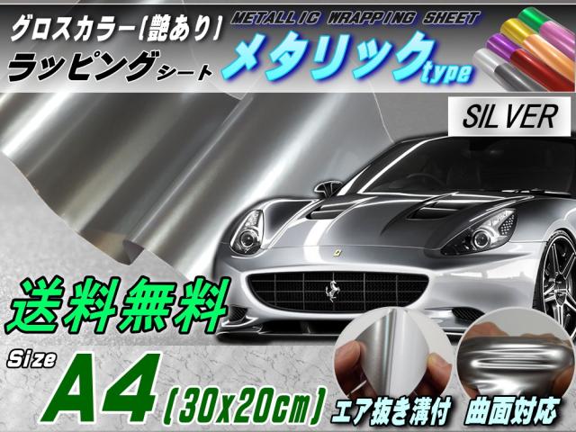 メタリックシート (A4) 銀 【メール便 送料無料】 幅30cm×20cm A4サイズ シルバー 艶あり ツヤ有り メタル調ラッピングフィルム シート ステッカー 3D曲面対応カスタム グロスカラー STiKA ステカsv-8 sv-12 sv-15クラフトロボ シルエットカメオ対応 製作 内装 外装