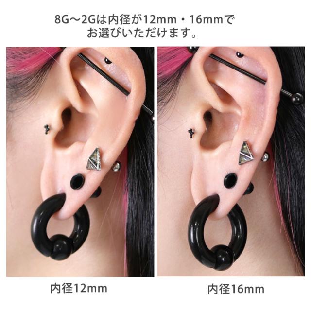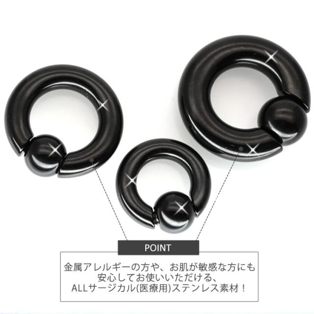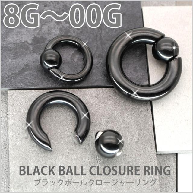 ボディピアス ブラックボールクロージャーリング 8G 6G 4G 2G 0G 00G