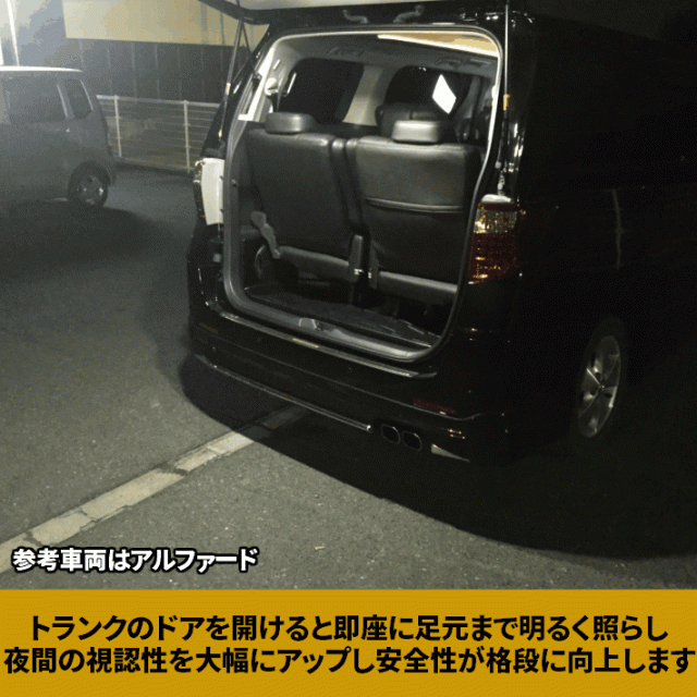 | 詳細 | エスティマ、エスティマハイブリッド 年式:H18.6〜 型式:ACR50W/ACR55W/GSR50W/GSR/55E/AHR20Wのラゲッジ(トランクルーム)増設用高輝度LEDランプです。 ・片側3ChipSMDを採用した26発、合計52発156連級の高輝度タイプです。 ・レンズはクリスタルカット加工済みで、LED本来の輝きを生かす事ができます。 ・純正のラゲッジランプは暗くて不便ですが本製品でラゲッジスペースを明るくし足元まで明るく照らします。 ・取り付け方法は内張りを外して配線を純正ラゲッジランプまで取り回し電源を取ります。 ・専用設計なのでで無加工でフィット。 配線も簡単な結線だけで楽チン綺麗な簡単取り付け仕様になっております。 ・商品のスイッチはリアドア開閉がスイッチとなります。 ・しかもリアラゲッジランプと連動し、トランクオープン時は足元まで照らし夜間視認性を大幅に向上させます。 |