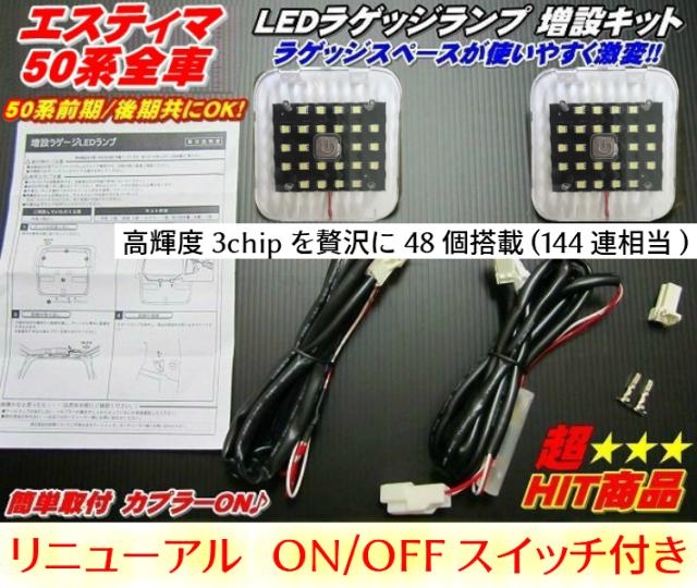 リニューアル タッチセンサー付 安全便利LEDラゲッジランプ増設キット 50系 エスティマ全車 エスティマハイブリッド20系全車対