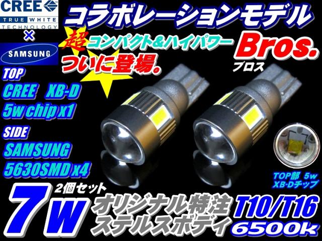 業務価格★超小型ハイブリッド,EV,12v,24v全て対応!!ステルス仕様 7wコラボレーションモデルBros.◆T10/T16 CREE-5W+サムスン5630SMD 4連