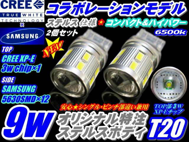 ★T30 T31 エクストレイル 専用バックランプ CREEコラボモデル ハイパワー9wステルス仕様 T20 ホワイト2個 シングル ピンチ部違い共通