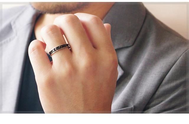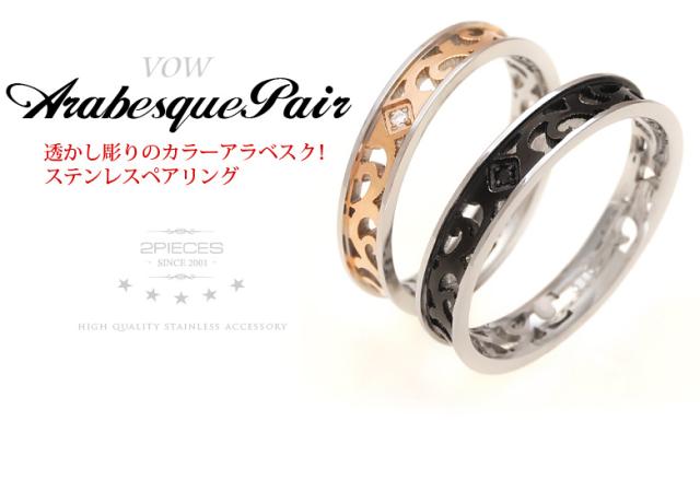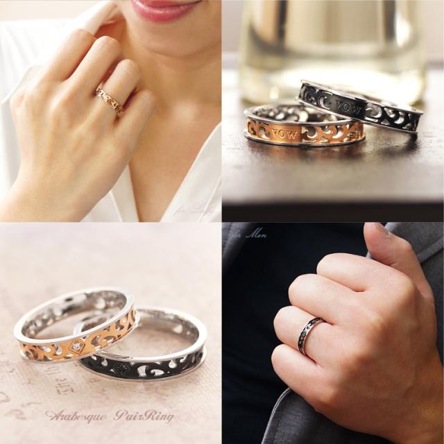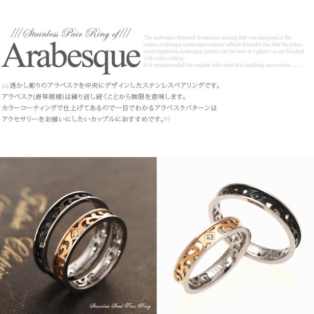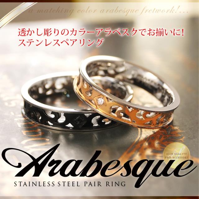 ペアリング ステンレス 指輪 ペアアクセ アラベスク ブラック ピンクゴールド 透かし プレゼント sr0149-pair BOX付きペアセット