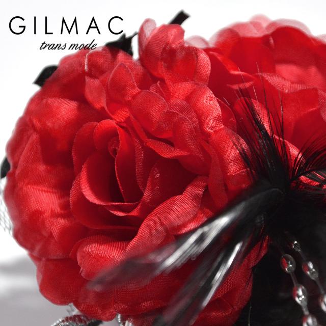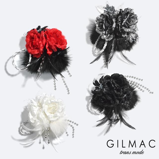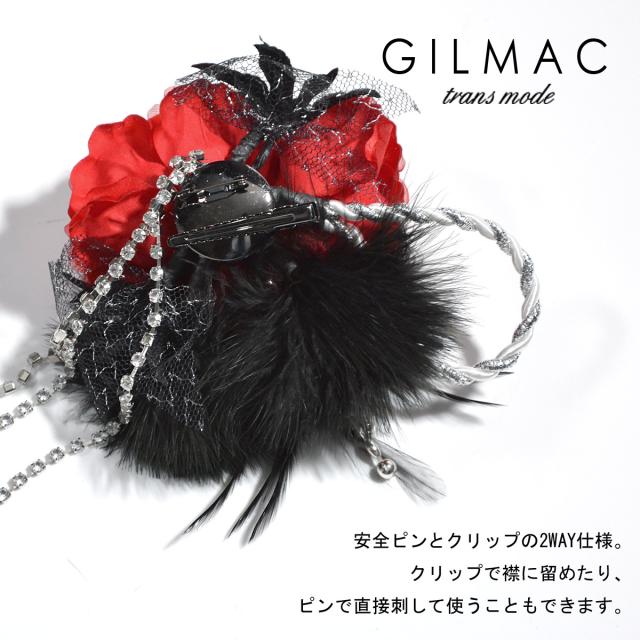 コサージュ 薔薇 フェザー ツイストロープ ブローチ メンズ コサージュ 日本製 結婚式 ホスト(レッドブラック) k5704