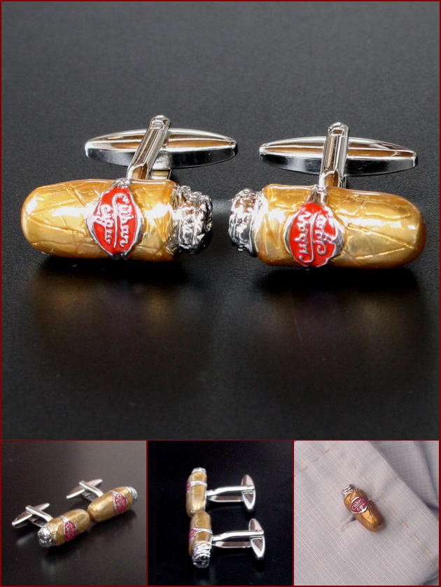 葉巻をモチーフにしたカフスボタンをセットにしました。