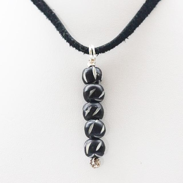 黒をベースとたビーズには、ランダムにカービングが施され白と黒の2トーンカラーに。