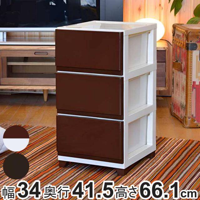 収納ケース デコニー 3段 組み立て式 チェスト ( 幅34×奥行41.5×高さ66.1cm 収納ボックス スリム 引き出し 収納 タンス プラスチック 洋服 衣類 日本製 リビングチェスト おしゃれ クローゼット 脚付き 収納チェスト )