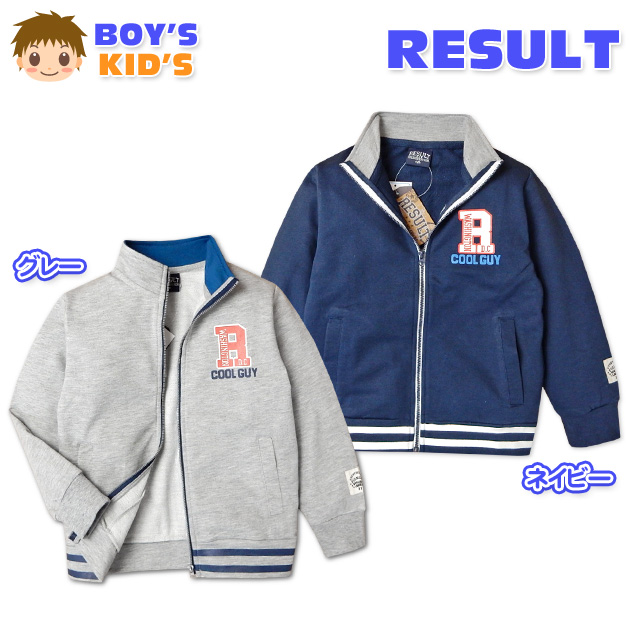 【送料無料】子供服 男の子 アウター フルジップ スタジャン ミニ裏毛 発泡ロゴプリント ボーダー柄 男児 キッズ【メール便対応】