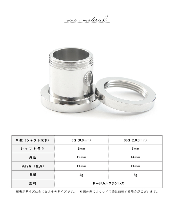 トンネル つけっぱなし ステンレス サージカルステンレス 医療用ステンレス 金属アレルギー アレルギーフリー 316L ボディピアス ブラック 0G 00G 拡張 ホールトゥ