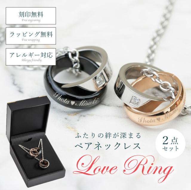 プレゼント 女性 ネックレス ペア アクセサリー・ジュエリー ペアネックレス 名前 刻印 名入れ ギフト 彼女 ステンレス 2個セット LoveRingネックレス 翌々営業日出荷 2本セット 名前 おしゃれ 人気 プレゼント