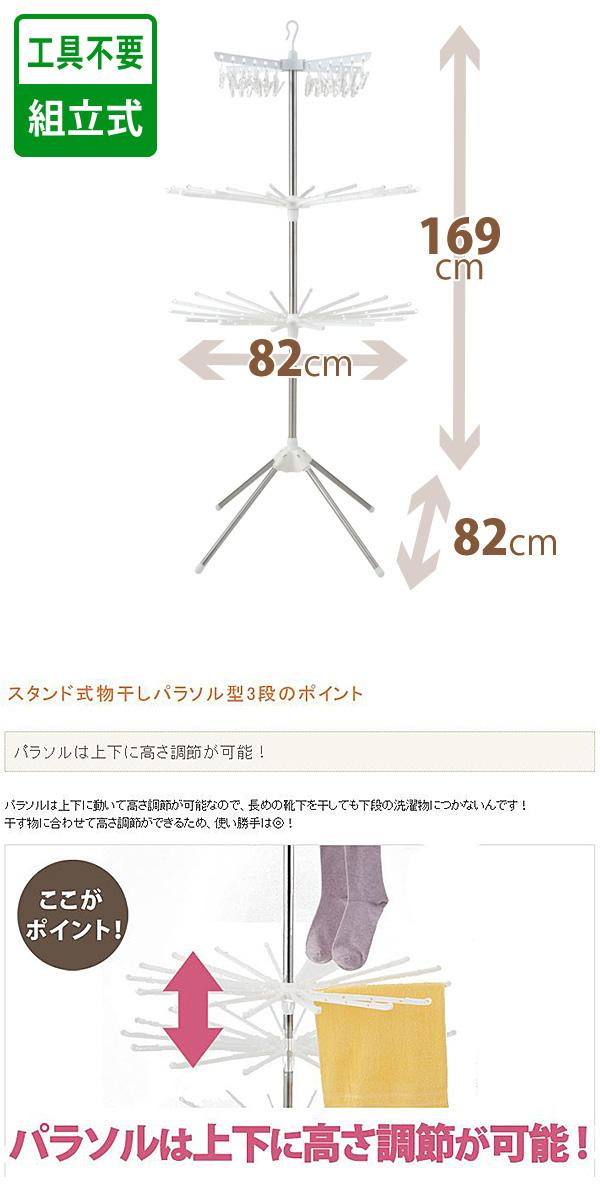 【部屋干し 室内干し ポーリッシュ 組立式 物干し スタンド物干し パラソル型3段 PS-10Kの商品詳細】
