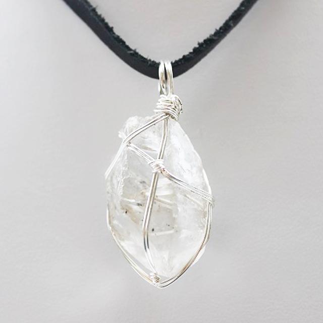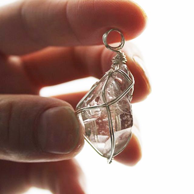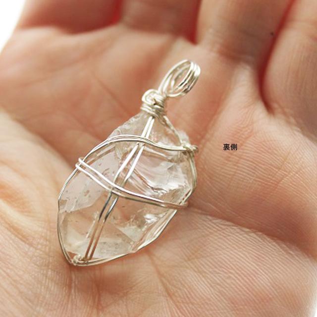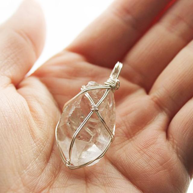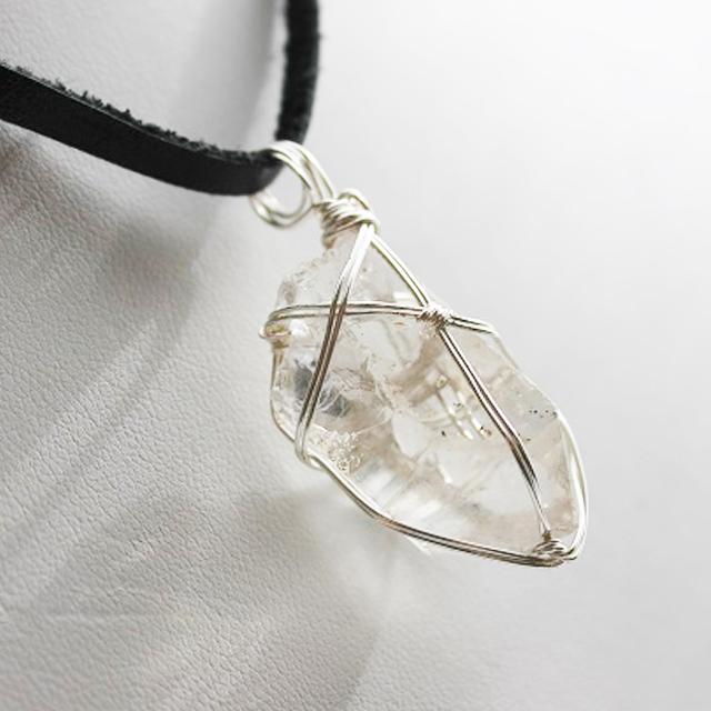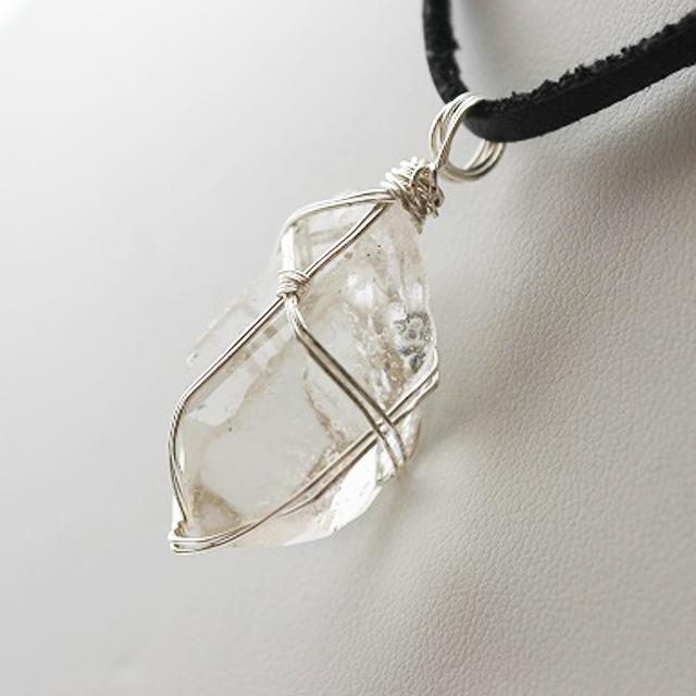 透明度の高いブラジル産水晶の原石一本剣に、ワイヤーラッピングを施しペンダントトップにしました。