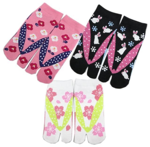 靴下 足袋 ソックス 女性用 3足セット フリー 23cm〜25cm 草履柄 椿 うさぎ 桜 スニーカー丈 和柄 レディース くつした 24cm