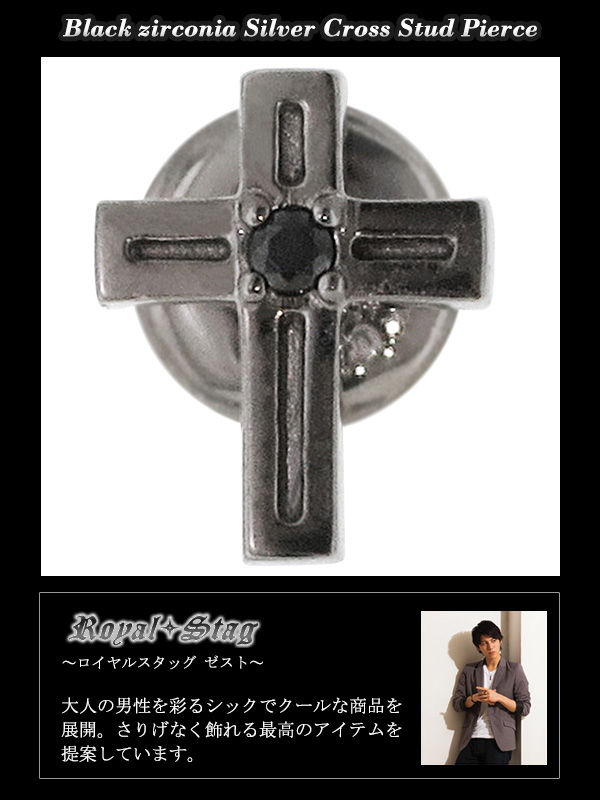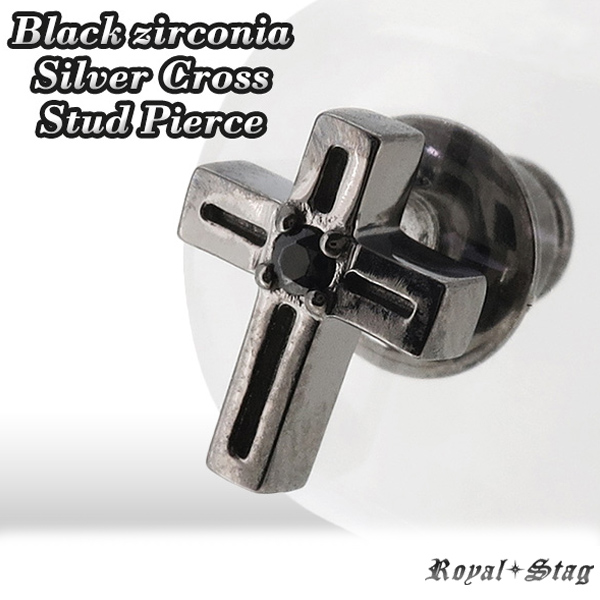 ブラックジルコニア シルバー クロス スタッド ピアス(1P 片耳用) 【Royal Stag】シルバー925 メンズ 男性用 ピアス 片耳 ブランド