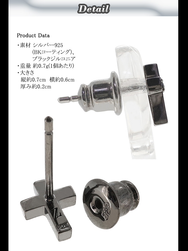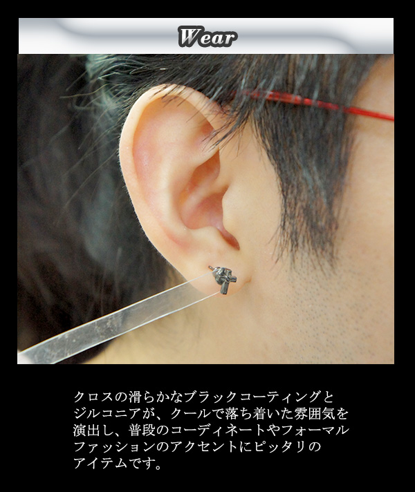 (シルバーアクセサリー/シルバーアクセ/ピアス/メンズアクセ/スタッドピアス/ブラック/ジルコニア/クロス)