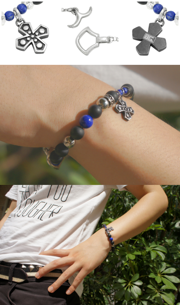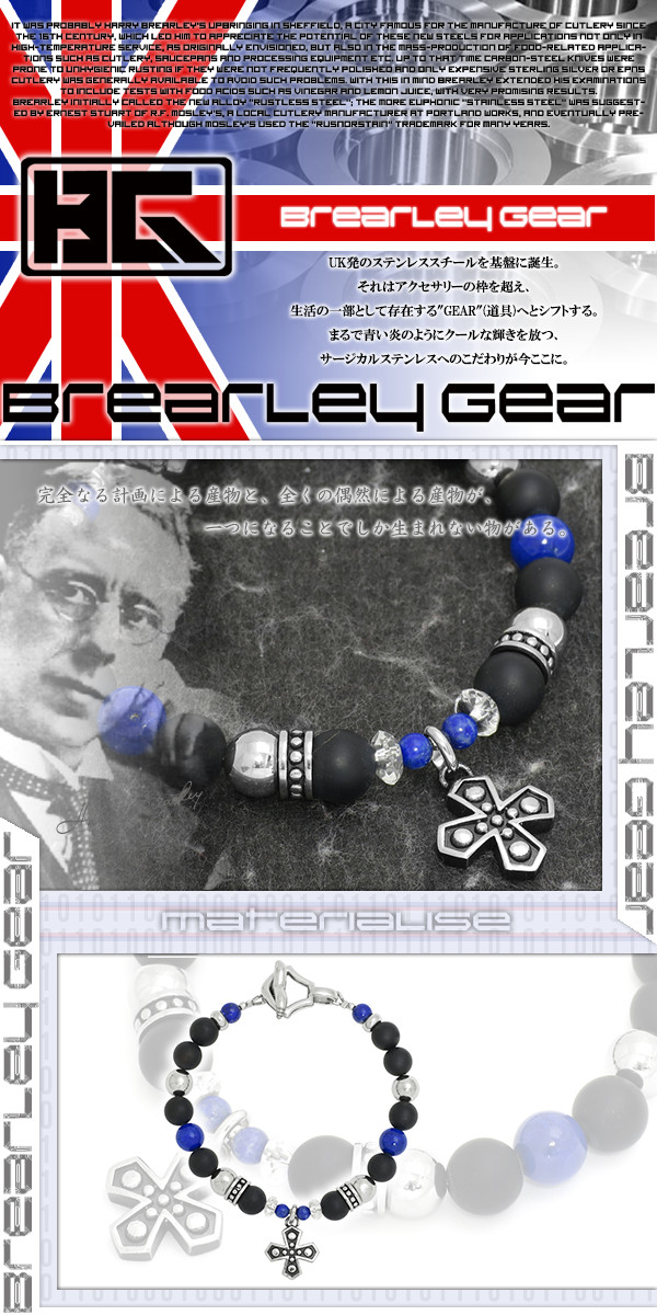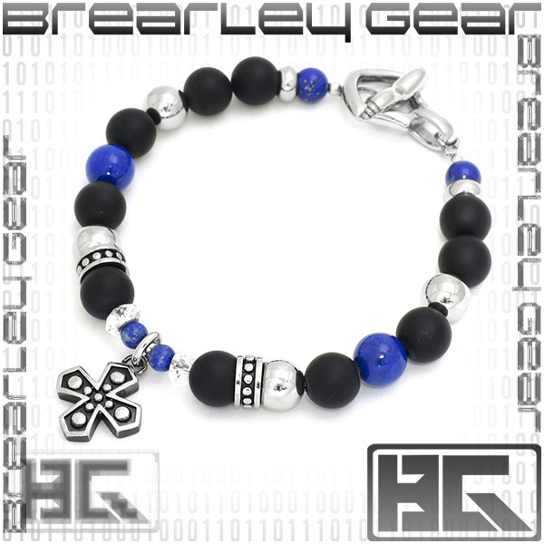 【Brearley Gear】クロス チャーム ラピスラズリ 水晶 ツヤ消しオニキス サージカルステンレス ブレスレット