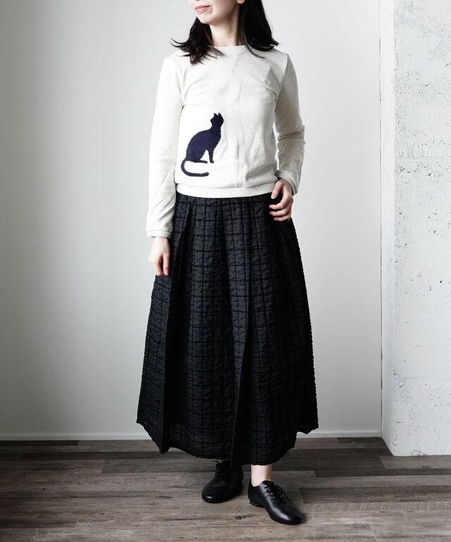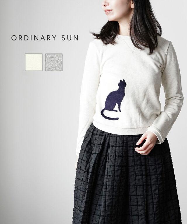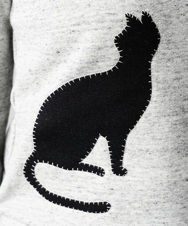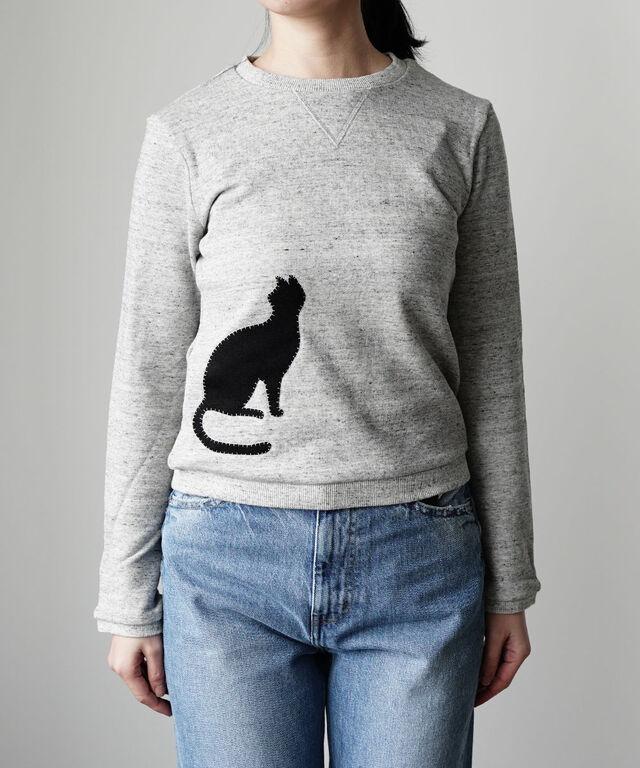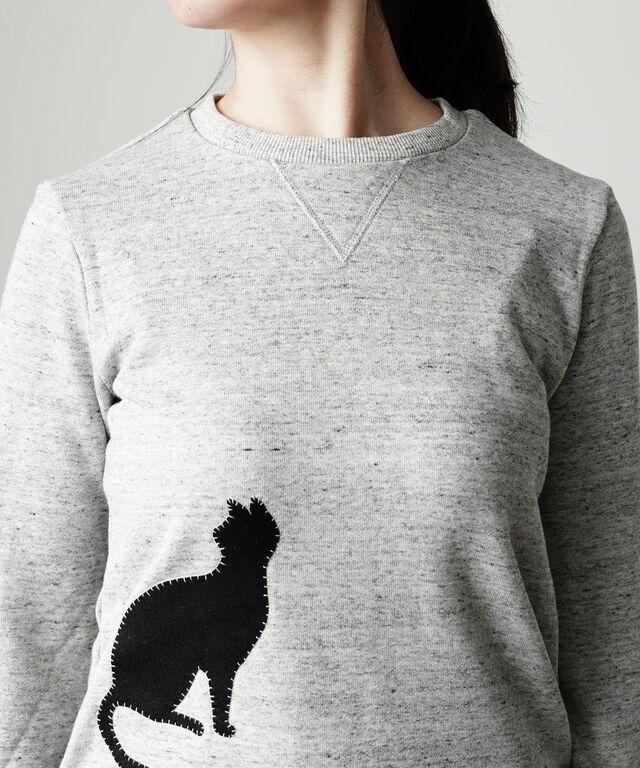 ネコのアップリケがキュートなワンポイントのスウェットプルオーバー。