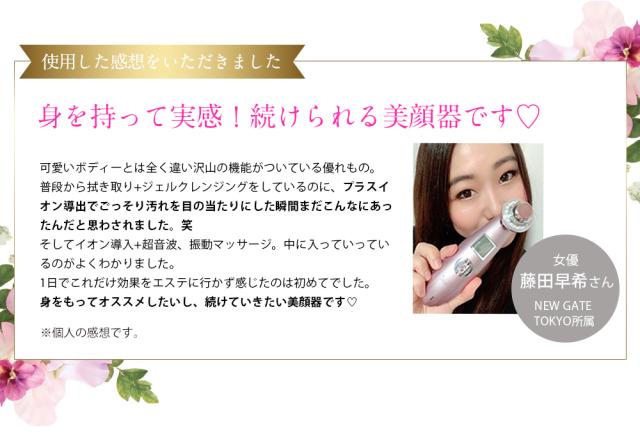 - 初めての美顔器でしたが使い方も簡単で、 肌の調子に合わせて使えるのでとても満足です。 これからも使い続けようと思います。