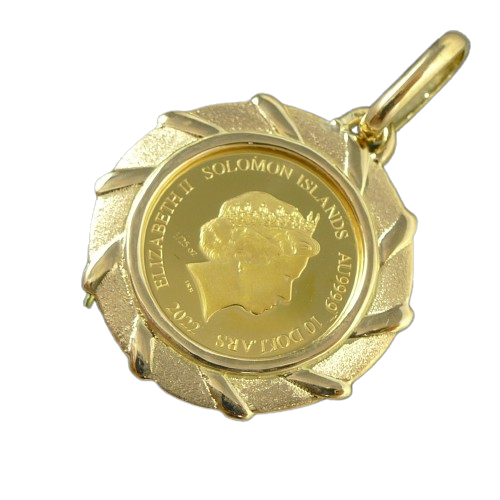 南太平洋の英連邦独立国・ソロモン諸島発行の1/25オンス純金コインに、K18製の枠が付いたペンダントトップです。