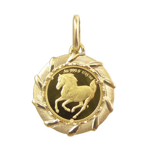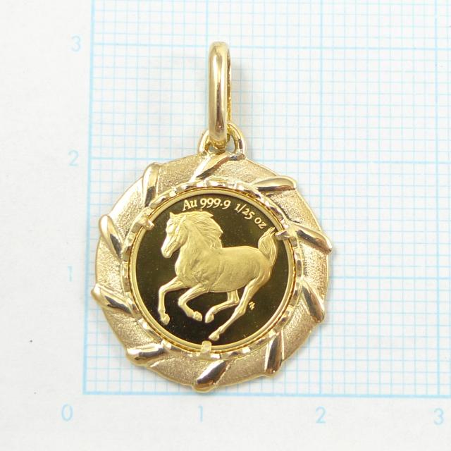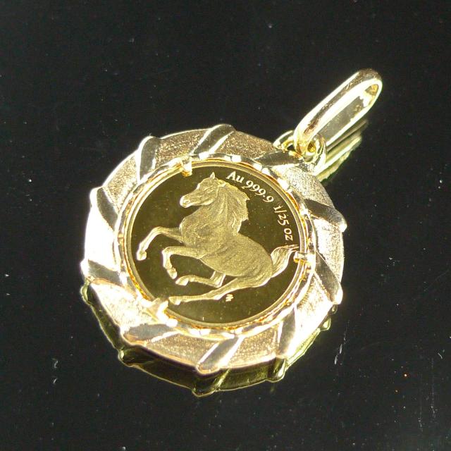 純金 ホース コイン k24 ソロモン ペンダント トップ 24金 25分の1oz 3g 外枠 バチカン 18金 18k 馬 エリザベス2世 男女兼用 金貨 取り寄せ