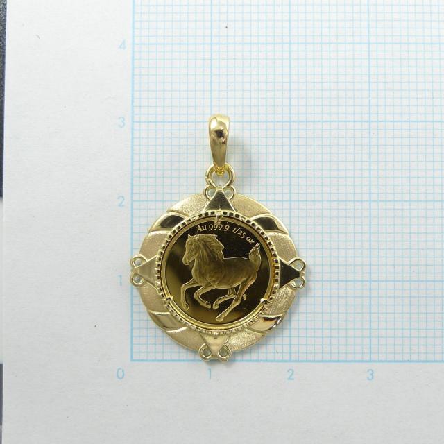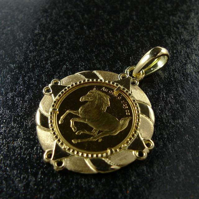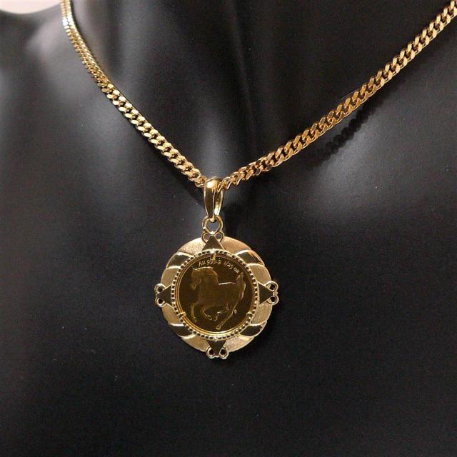 純金 k24 ホース コイン ペンダントトップ ソロモン 金貨 24金 25分の1オンス 3.8g 馬 エリザベス2世 メンズ レディース