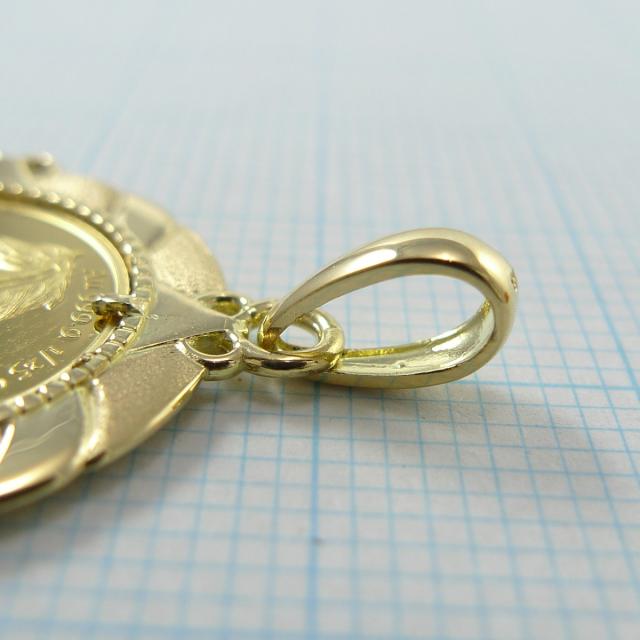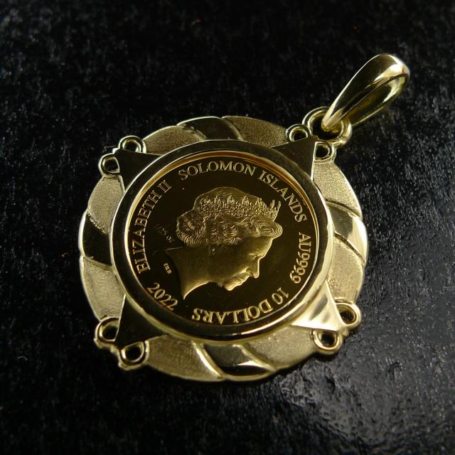 南太平洋の英連邦独立国・ソロモン諸島発行の1/25オンス純金コインに、K18製の枠が付いたペンダントトップです。
