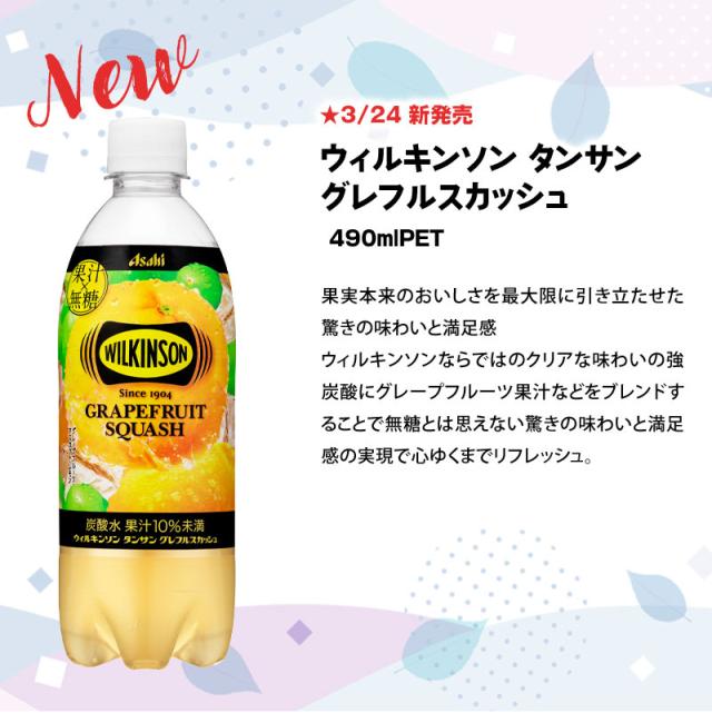 - ウィルキンソン タンサン グレフルスカッシュ 490mlPET★NEW★ 3/24新発売!