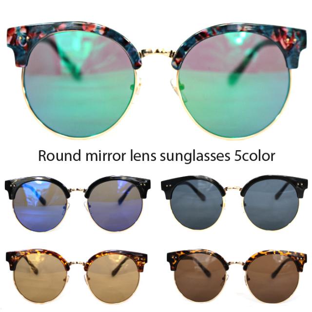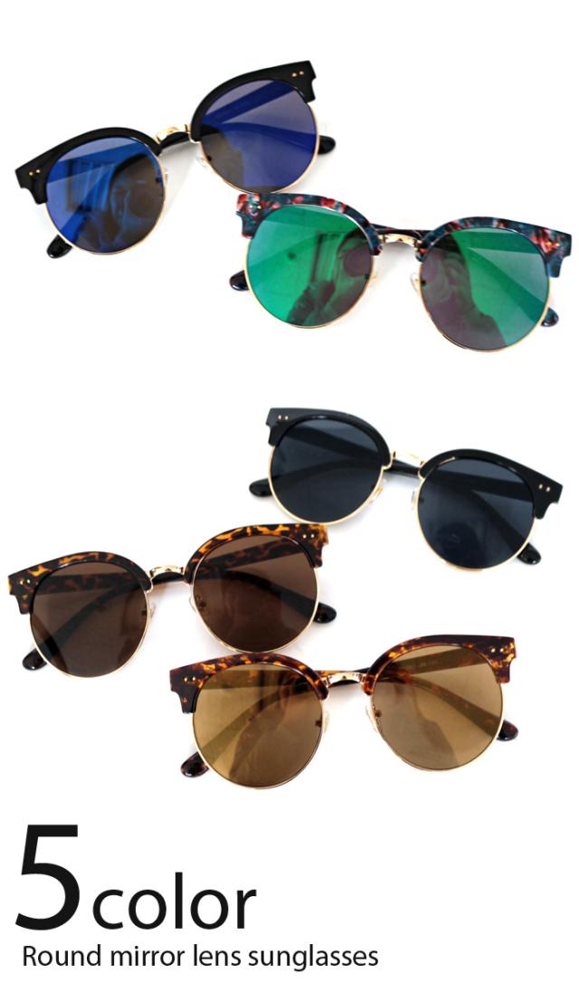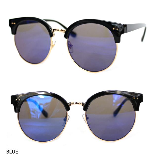 ミラーサングラス クラブマスター ウェリントン ラウンド サングラス メンズ レディース ブルー
