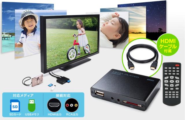 デジタルメディアプレーヤー USBメモリー SDカード ビデオ 写真 再生機 USBメモリー SDカード HDMI接続 [400-MEDI020H]