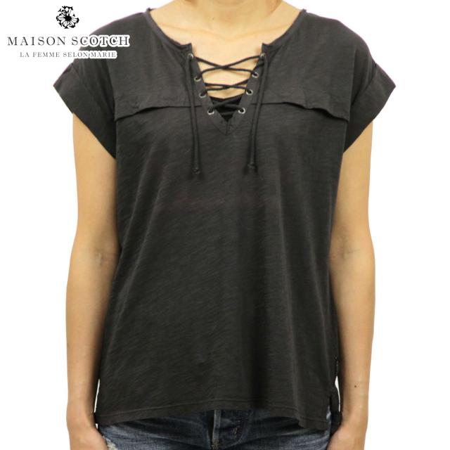 メゾンスコッチ MAISON SCOTCH 正規販売店 レディース 半袖Tシャツ Short sleeve tee with lace up safari detail at front 131234 95 D00S20
