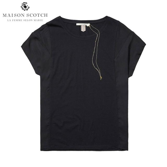 メゾンスコッチ MAISON SCOTCH 正規販売店 レディース 半袖Tシャツ Woven & jersey panelled tee 131229 90 D00S20