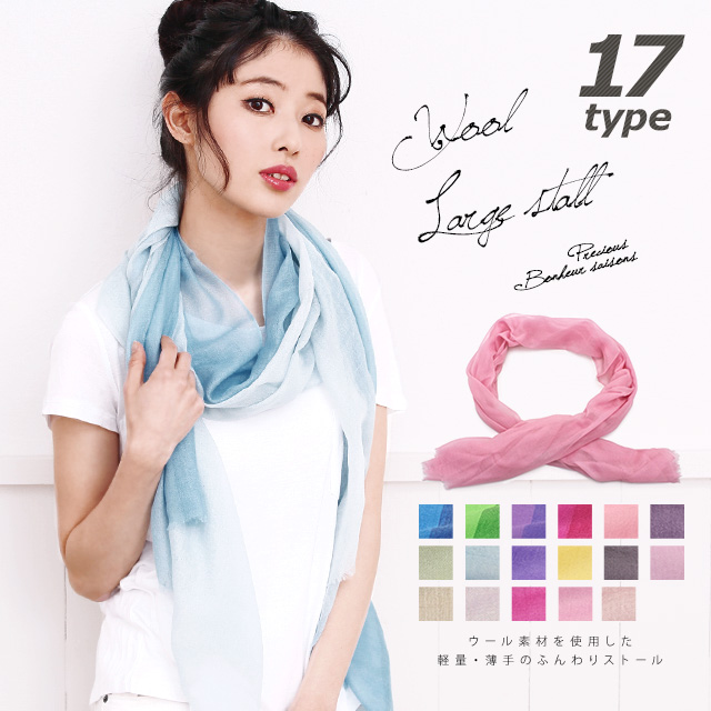 【17 type!ブランド『bonheur saisons』のショール】ストール/無地/グラデーション/シンプル/ウール/軽量/極薄