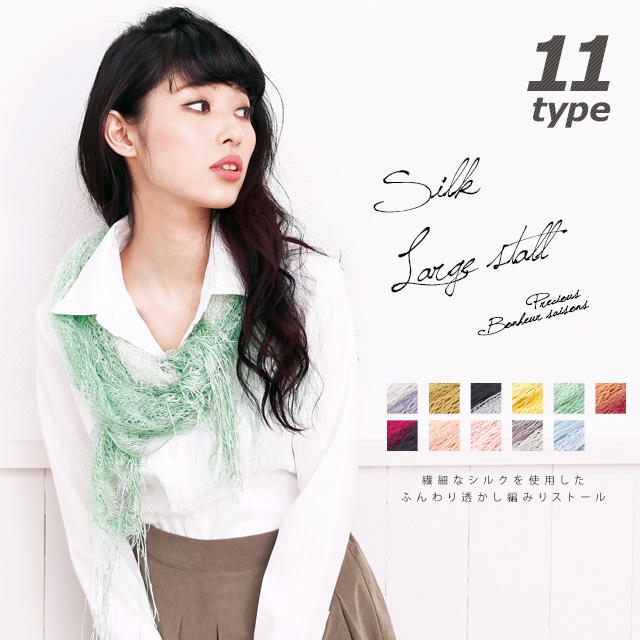【11 type!ふんわり軽やか「京の絹」の手ぼかしストール】絹/シルク/透かし編み/グラデーション/ショール/日本製