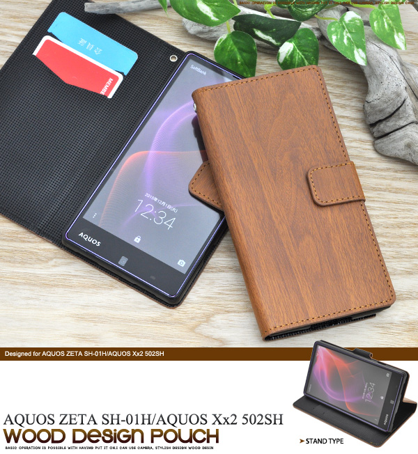 AQUOS ZETA SH-01H/AQUOS Xx2 502SH用ウッドデザインスタンドケースポーチ