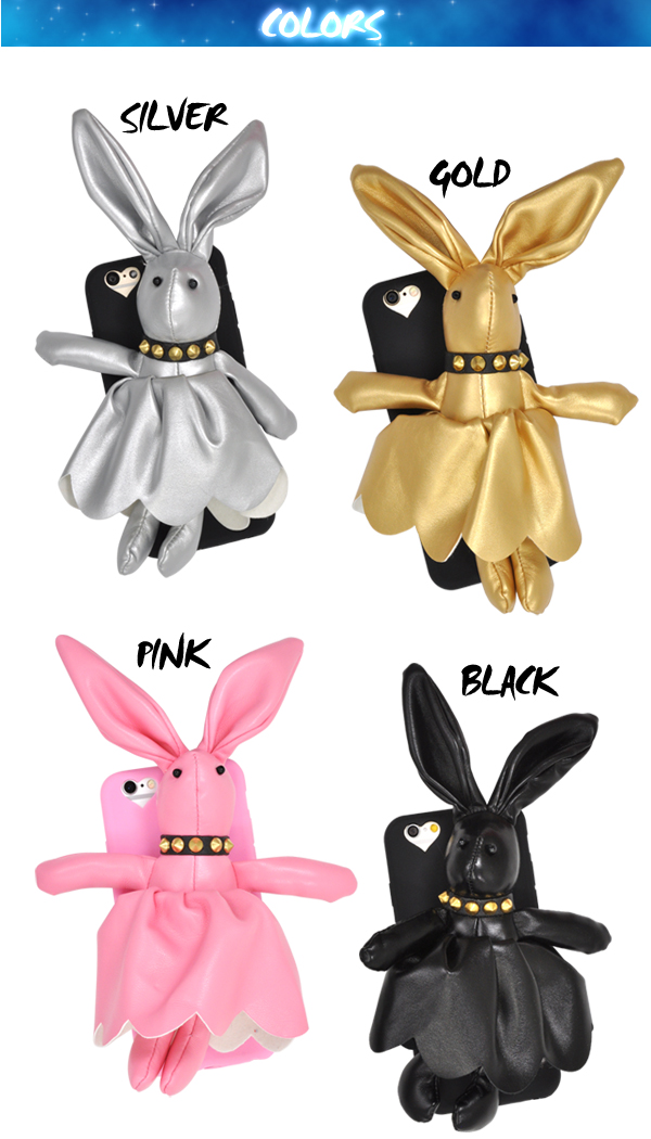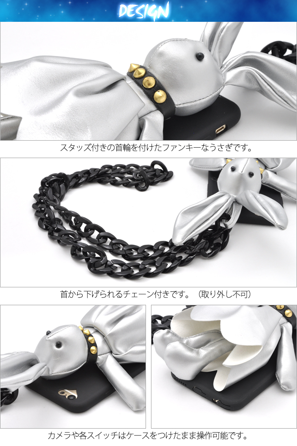 かわいいうさぎのぬいぐるみにスタッズつきの首輪で小悪魔感を演出したケースです!