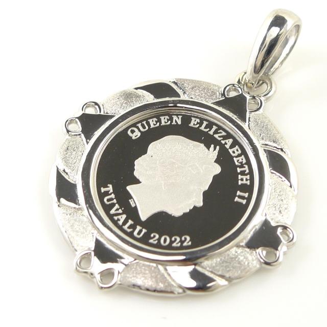 南太平洋の英連邦独立国・ツバル発行の1/25オンス純プラチナコインに、Pt900製の枠が付いたペンダントトップです。