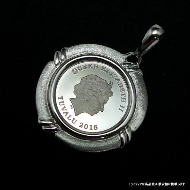 南太平洋の英連邦独立国・ツバル発行の1/25オンス純プラチナコインに、Pt900製の枠が付いたペンダントトップです。