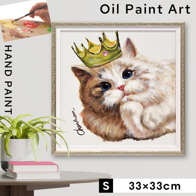 アートパネル 動物 絵 壁 アートパネル 絵画 油絵 モダン 玄関 インテリア 壁掛け 猫 ネコ オイルペイントアート キングキャット Sサイズ