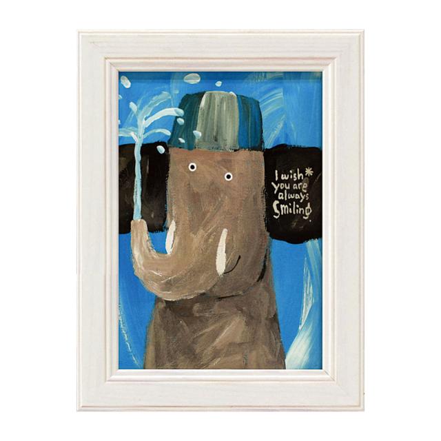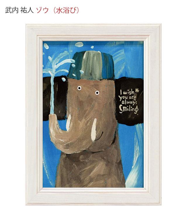 アートパネル 動物 18×13.5cm 武内祐人 ゾウ 壁掛けアート アート パネル 北欧 壁掛け 卓上 両用 子供部屋 インテリア 小さい 絵 かわいい おしゃれ 武内祐人 ぞう 水浴び アートフレーム