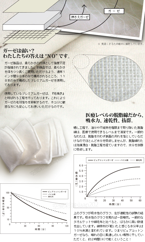 無添加 ピュアコットンガーゼ 脱脂綿入り ガーゼケット シングルサイズ RK-1 高級
